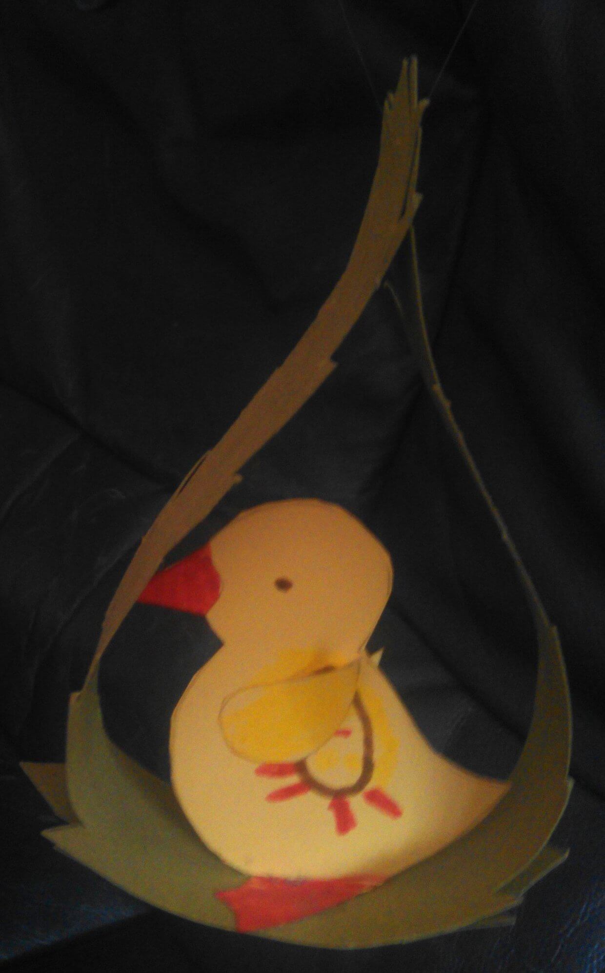 Auch im März bastle ich wieder jede Menge im Kindergarten. Am Ende des Monats steht Ostern an, daher sind verschiedene österliche Objekte: ein Huhn aus Tapete, zwei Hühner im Gras, ein Küken, sowie ein Ei für den Osterstrauß.